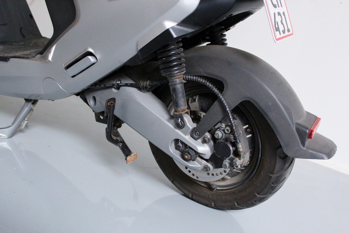 Med en køretøjsvægt inkl. batteri på kun 72 kg og en lastkapacitet på 221 kg, er MQi+ Sport både let og robust. Scooteren har hydrauliske skivebremser på både for- og baghjul, som sikrer pålidelig bremsekraft under alle forhold. De 90/90-10 dæk giver fremragende vejgreb og stabilitet.