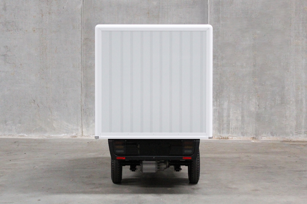Large Box-varianten kommer med sidedøre i boksen, varmeapparat og bakkamera, samt skivebremser for og bag. Den lave frihøjde og solide opbygning sikrer stabil kørsel, selv med tung last.